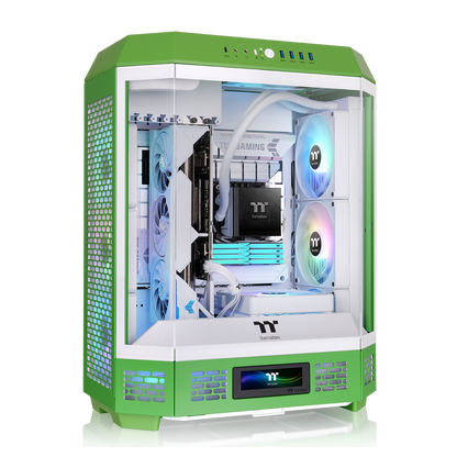 Being the new mid tower chassis of The Tower Series, The Tower 600 Light-Year Green is an ATX case with a classic vertical case design and comes in an octagonal prism shape that is compatible with the latest hidden-connector motherboards. It supports up to a 420mm AIO radiator on the right side and a 360mm AIO radiator on the left side, and it can accommodate up to thirteen 120mm fans or nine 140mm fans. If you want to make The Tower 600 Light-Year Green more visually appealing, you can purchase the separately sold 3.9" LCD Screen Kit and Chassis Stand Kit to upgrade the build; the former to display real-time component information and the latter for a unique view with a special horizontal placement. With its unique design and ample space, The Tower 600 Light-Year Green is ready to unlock the full potential of your configuration.