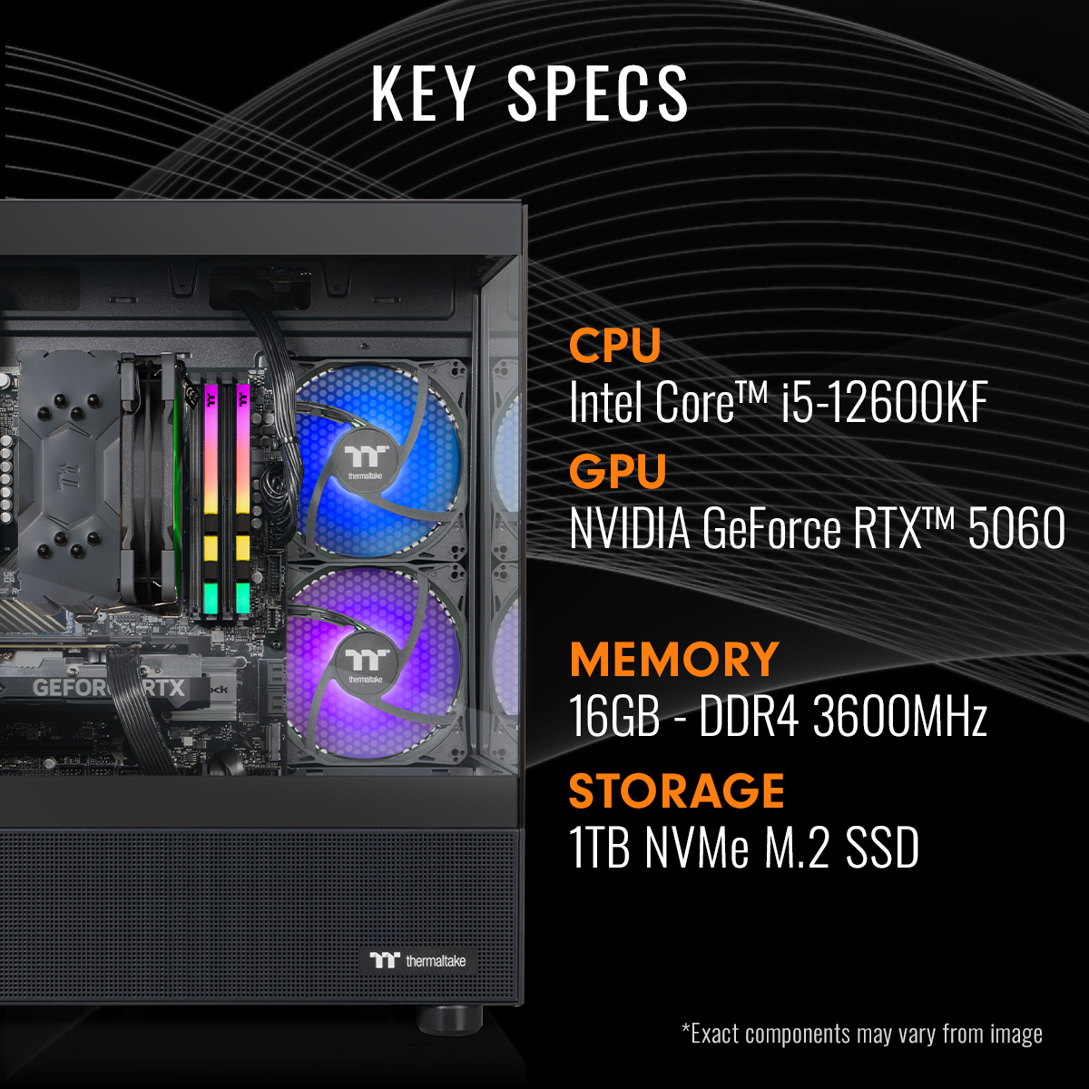 Découvrez la série View, alliant performances d'élite et design époustouflant. Entouré de verre trempé intégral, le View i1260-170 met en valeur ses puissants composants internes, dont un processeur Intel Core™ i5-12600KF et une carte graphique NVIDIA® GeForce RTX™ 5060. Profitez de temps de chargement ultra-rapides grâce à un SSD NVMe de 1 To et d'un multitâche fluide grâce à 16 Go de mémoire DDR4. Doté d'un refroidisseur à air ARGB tour améliorant l'esthétique et l'efficacité thermique, le View Series allie élégance esthétique et technologies gaming avancées.